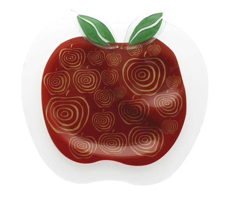 Decorate your table in style this Rosh Hashanah with this spectacular Rosh Hashanah apple shaped plate! Made of glass, the apple plate is beautifully decorated with an intricate apple motif and has separated areas for apples & honey the traditional Rosh Hashanah symbolic foods. Stylish and meaningful, this dish is the must have addition to your festive table.
