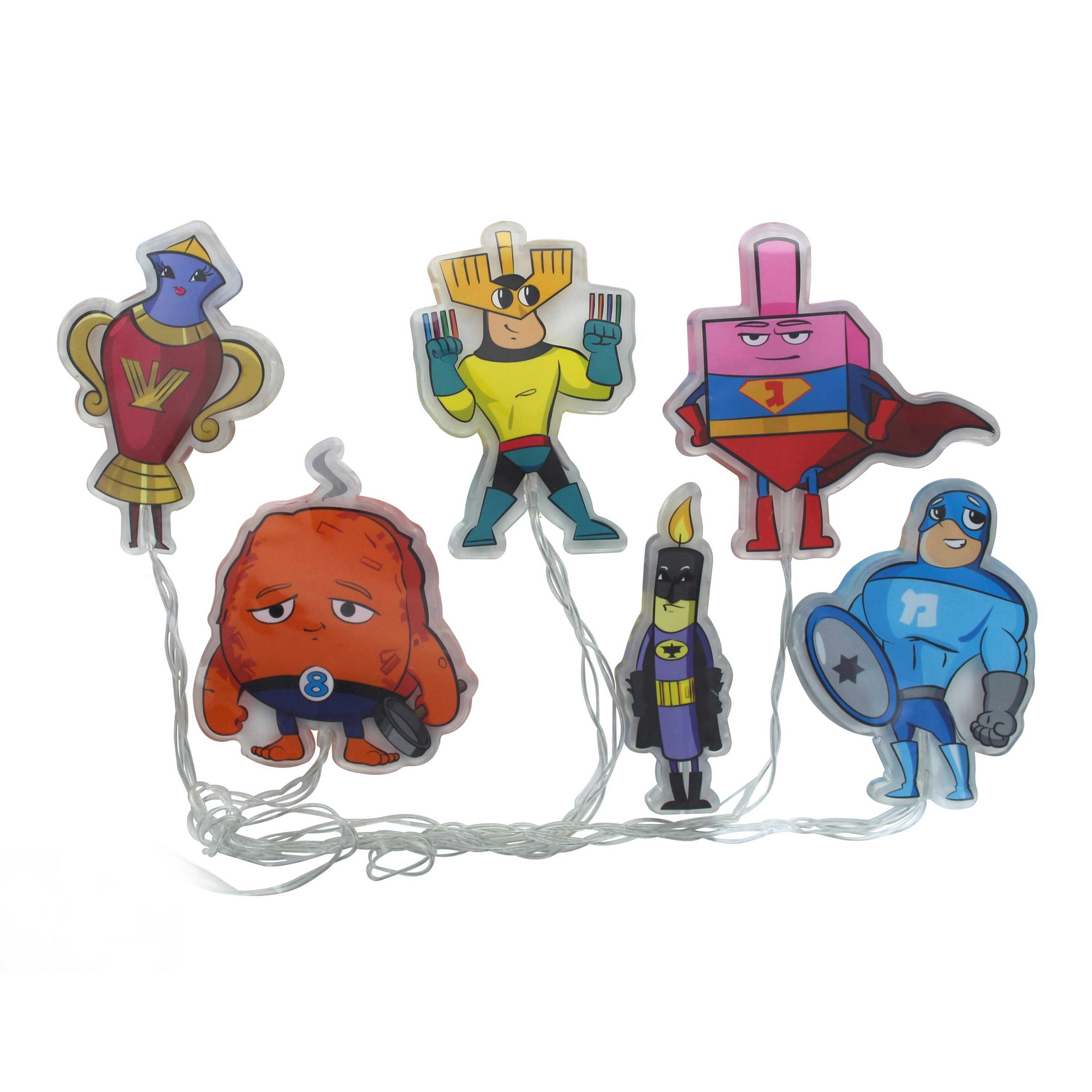 his beautiful decorative Chanukah window gel is the perfect gift to brighten up any window and add some Chanukah sparkle. This pack consists of six Chanukah superheroes.
