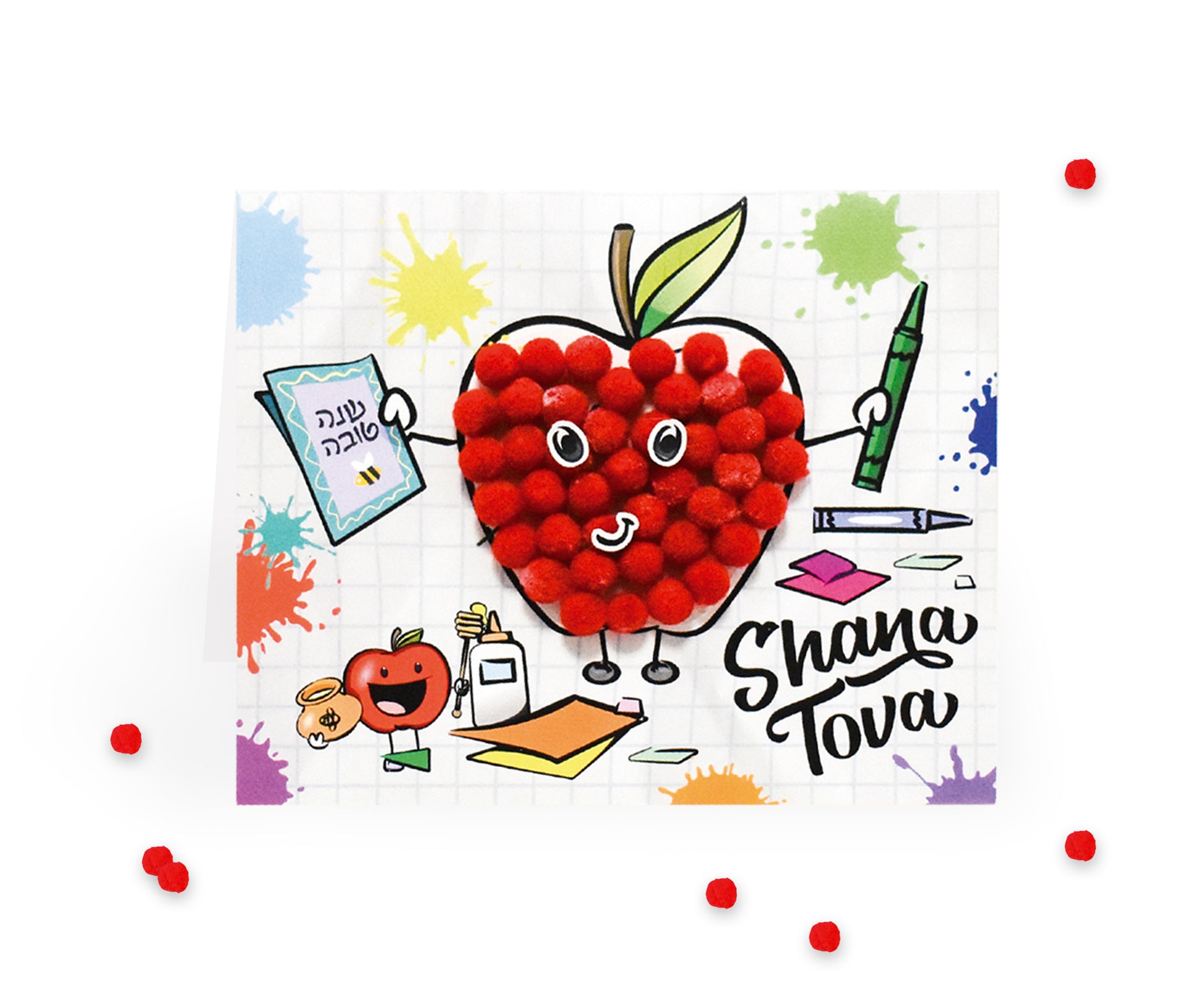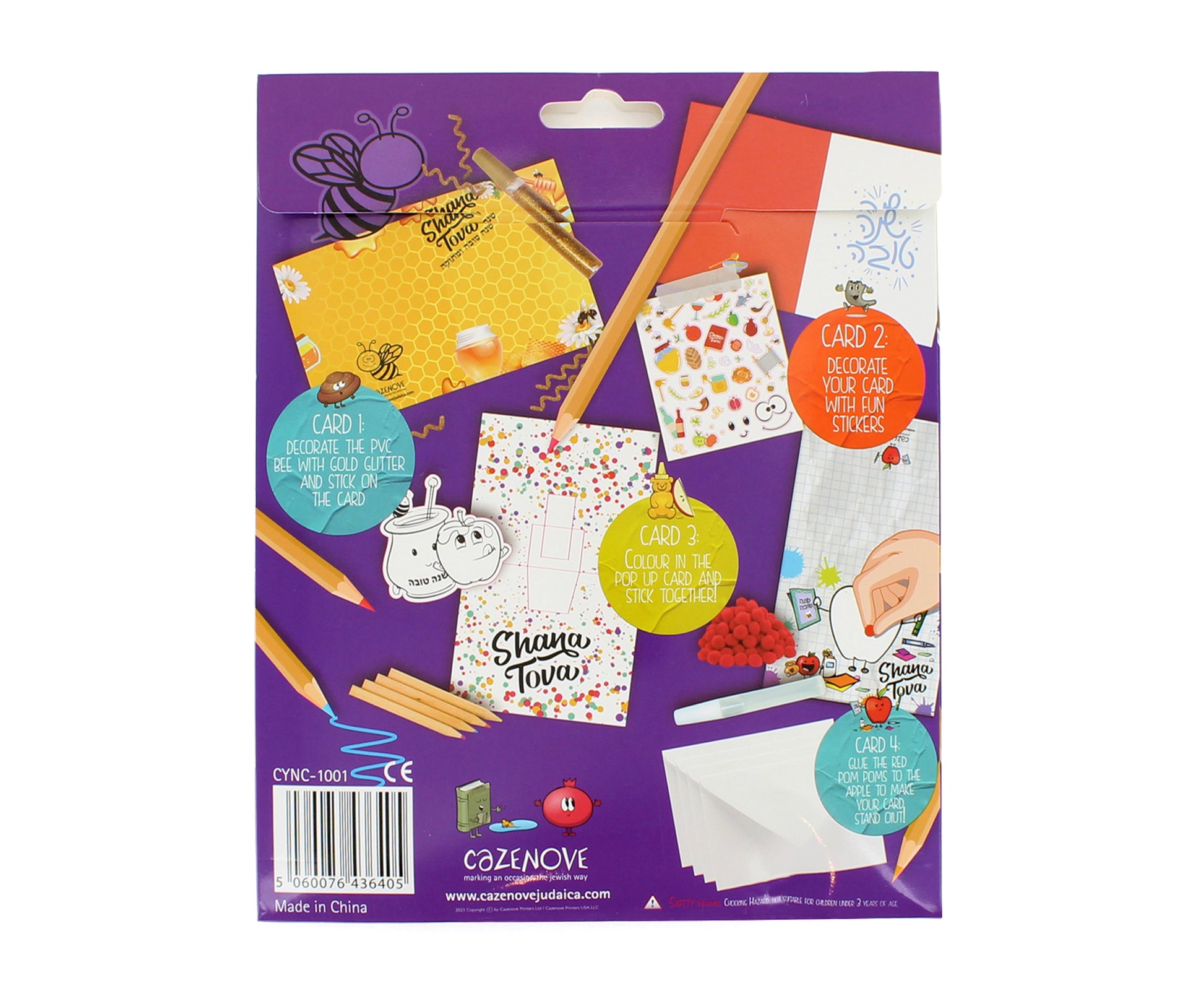 This create your own 3D Rosh Hashanah card set is a great activity for children. The set consists of 4 printed cards and envelopes, 4 colored pencils, 1 pack of pom poms, 1 glitter pen, 1 sticker sheet and a tube of glue for the children to create their own Rosh Hashanah cards. Great for play, education, birthday parties... etc.