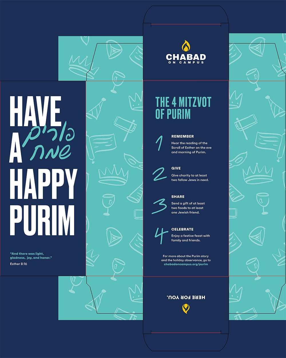 Fun Filled Mishloach Manos with Chabad On Campus Branding -