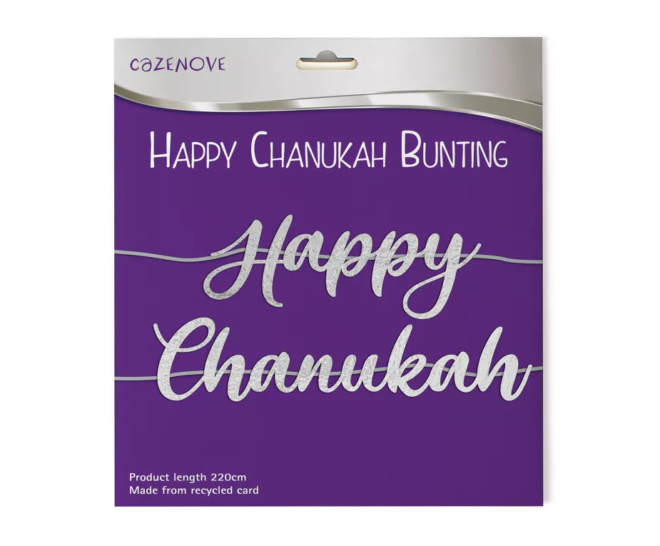 A fun and eye catching foil bunting, perfect for any Chanukah party. This foil bunting spells out "Happy Chanukah" and can be hung on with the string included. Suitable for children of 3+ years of age.
