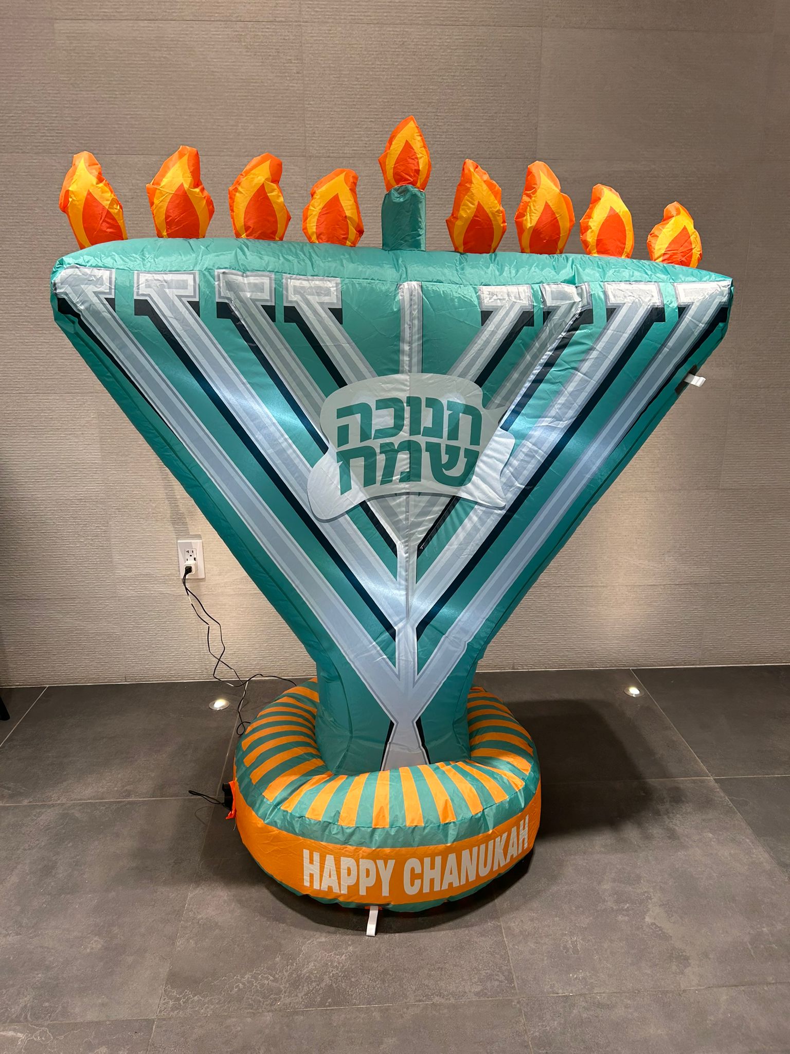 Celebrate Chanukkah with this 5ft tall, 4ft wide Inflatable Menorah—perfect for indoor or outdoor decor.