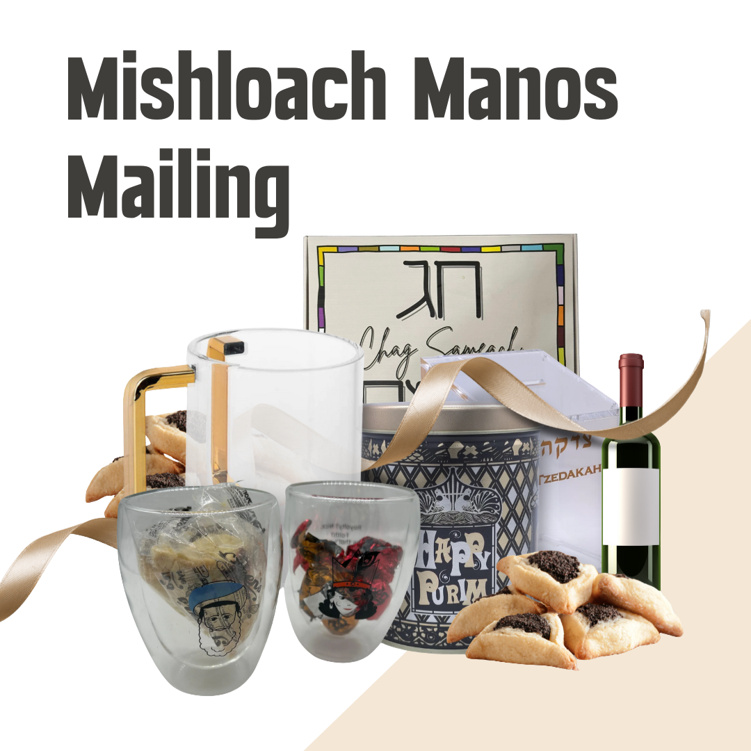 - Mailing List Coordination: Share your mailing list with us, and we'll take care of the rest. We ensure that each Mishloach Manos package is sent directly to the recipients on your list, spreading joy and warmth on your behalf.