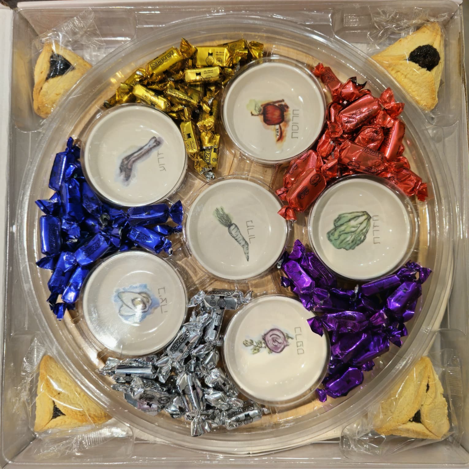 - Seder Plate gift Box - 4 Hamantashen, approx. 85 Candies.