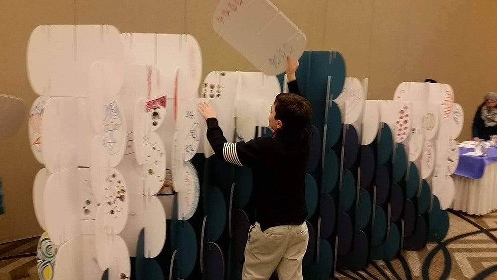 The corrugated cardboard modules can be assembled in multiple configurations.