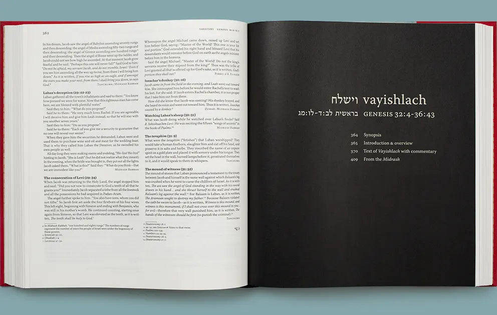 This revolutionary edition of the first book of the Bible features a new foundational translation, an anthology of commentaries representing the full spectrum of Jewish learning through the ages, and an abundance of illustrations, maps, and infographics.