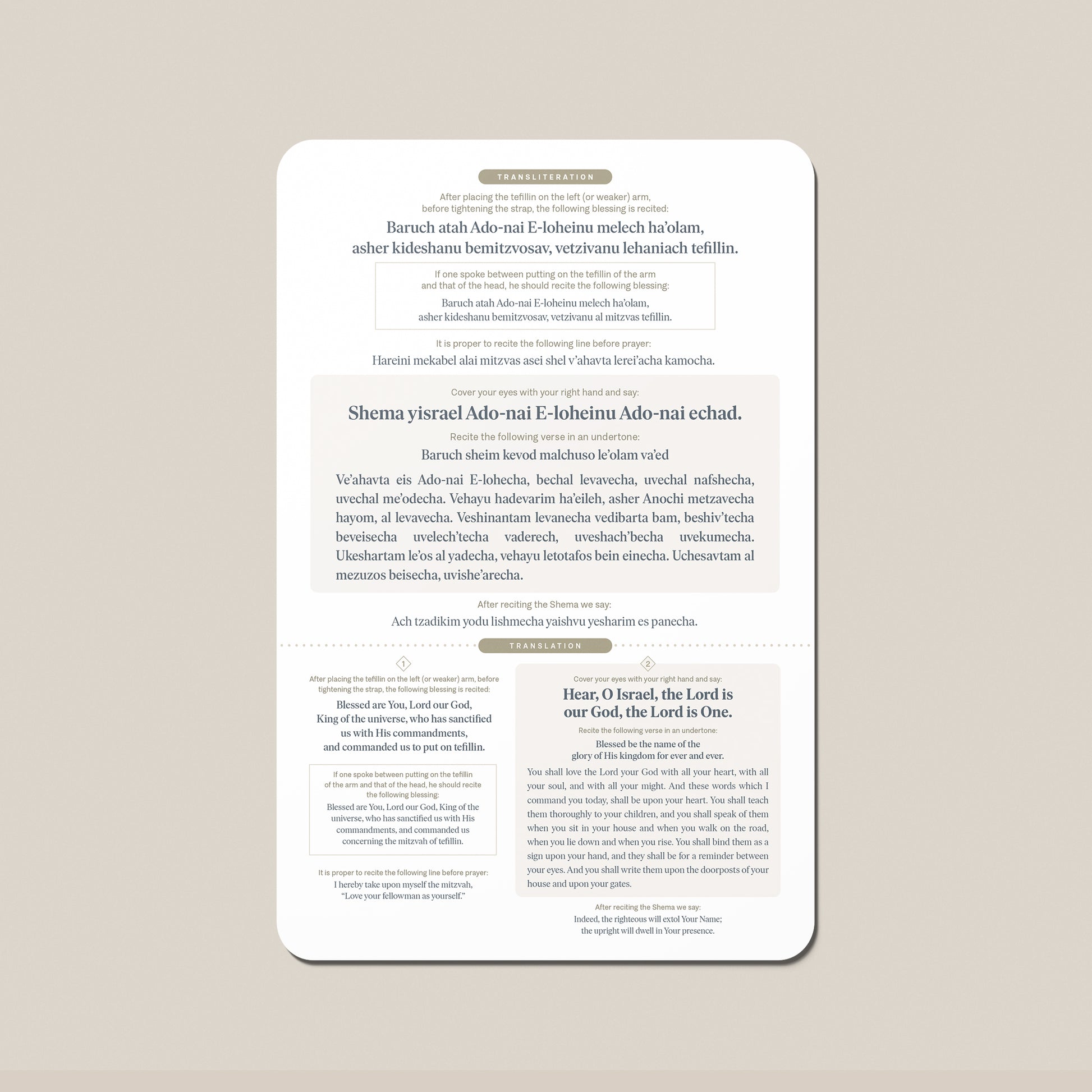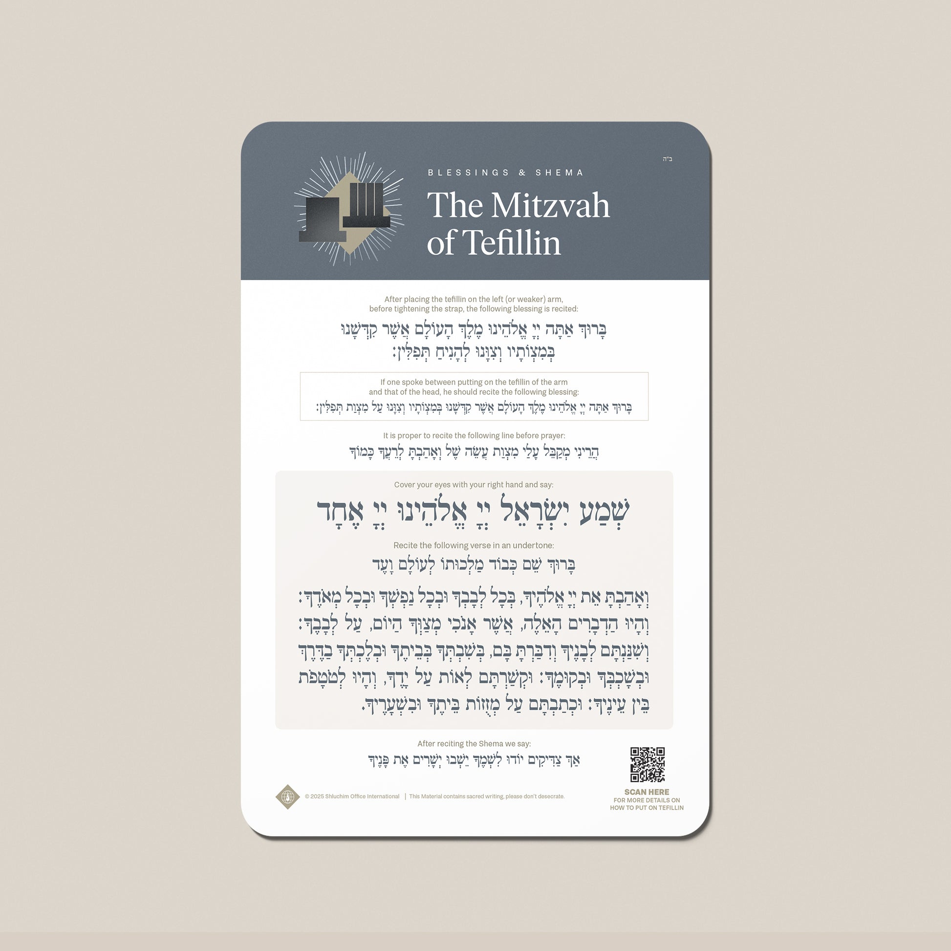 Whether you're on the go doing Mivtzoim, by a Tefillin stand, or giving it to a community member — this card is built to last and designed for easy reading.